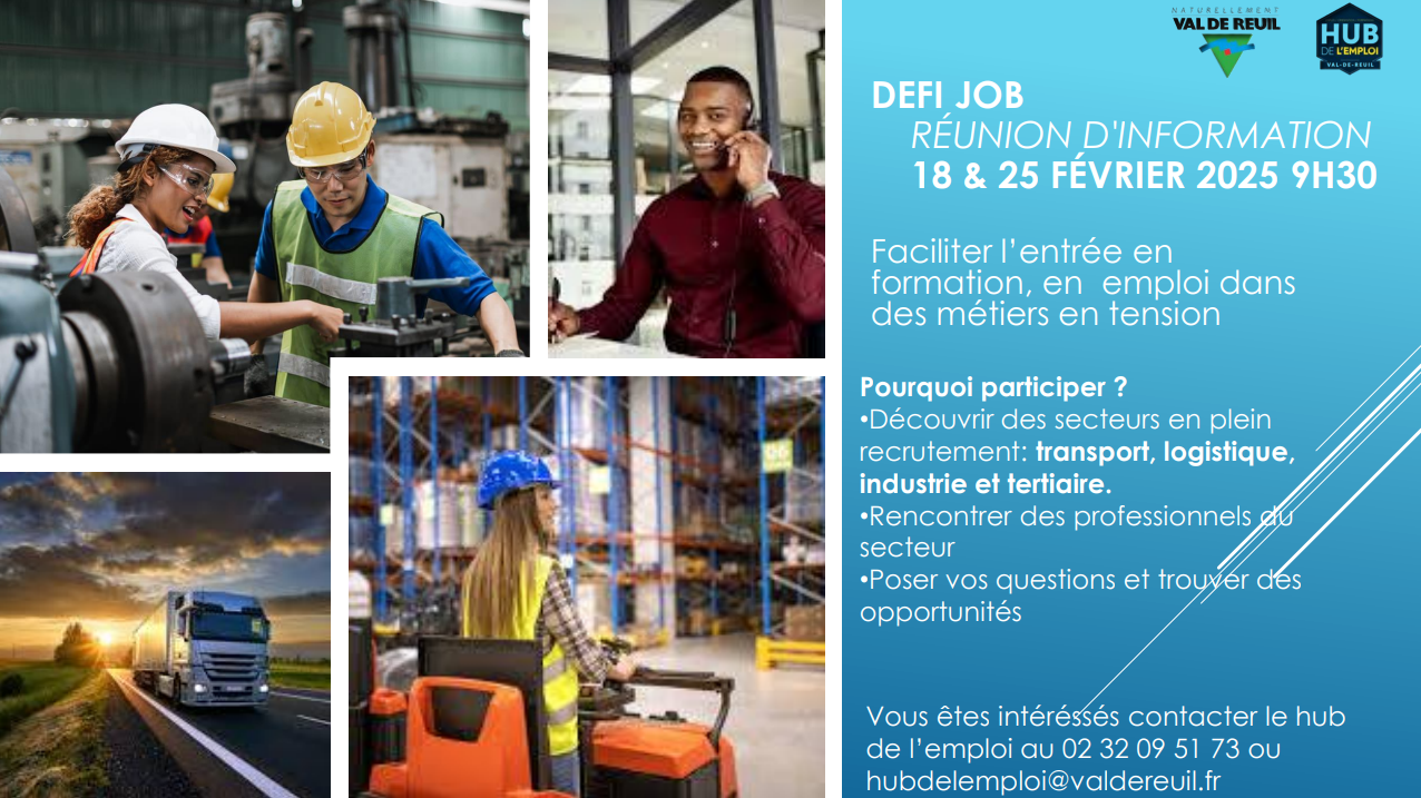 La Ville de Val-de-Reuil, en partenariat avec Adéquation développement et le GRETA Portes Normandes, organise la 2ème édition de Défi Job.