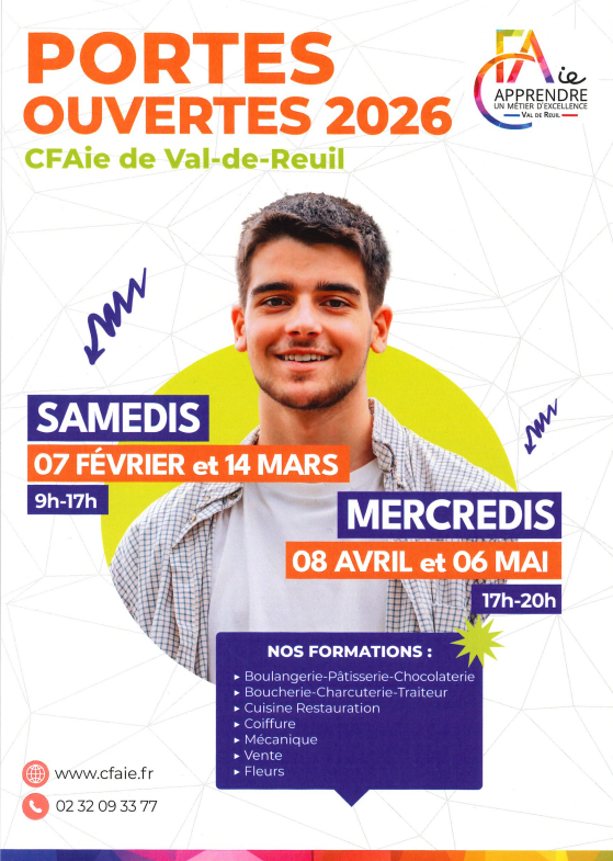 Dans la perspective de la rentrée 2026-2027, le CFAIE de Val-de-Reuil, Centre de Formation des Apprentis Interconsulaire de l'Eure, ouvrira ses portes au public :